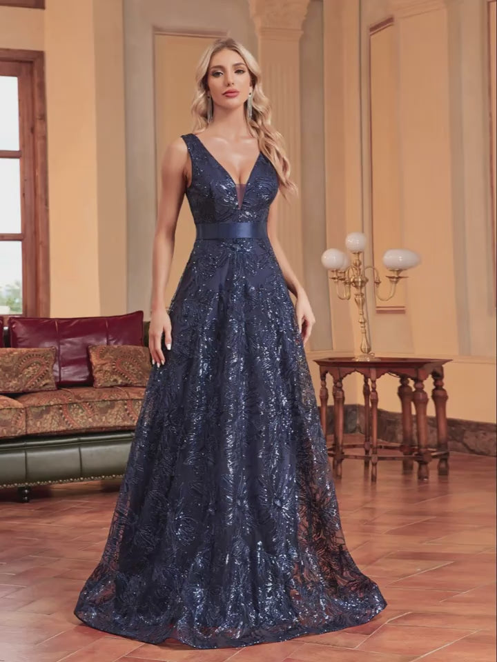 Cinched Tank Bridesmaid Dress, Elegant Backless V Neck Floor Length Dress For Wedding Party | XUIBOL