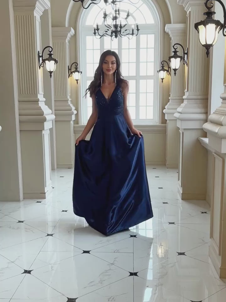 Sequin Sleeveless Bridesmaid Dress, Elegant V-neck Floor Length Dress | XUIBOL